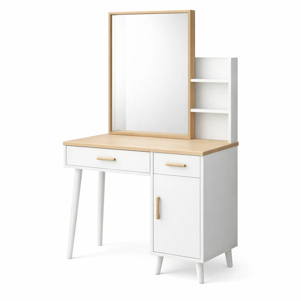 Características: Un cajón, un armario con puerta, dos estantes, espejo integrado.